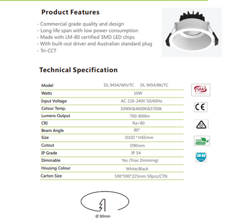 - Selectable colour temperature by DIP switch; 3000K, 4000K, 5700K