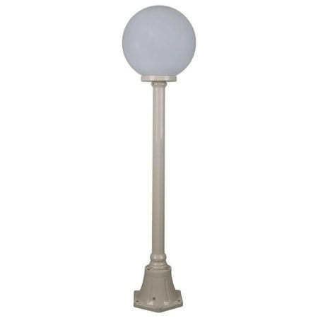 Siena 1 light 1.25m post light, die-cast aluminium body complete with 300mm opal acrylic sphere. Made in Italy, assembled and powder coated in Australia.