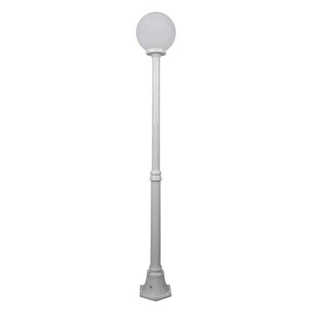 Siena 1 light 1.85m post light, die-cast aluminium body complete with 250mm opal acrylic sphere. Made in Italy, assembled and powder coated in Australia.