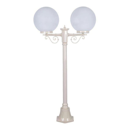 Siena 2 light 1.4m post light, die-cast aluminium body complete with 300mm opal acrylic sphere. Made in Italy, assembled and powder coated in Australia.