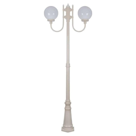 GT-620 Lisbon Twin 25cm Sphere Curved Arms Tall Post Light - Powder Coated Finish / E27 - Beige