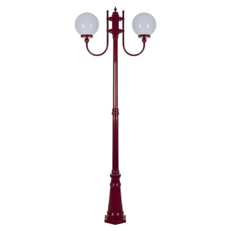 GT-620 Lisbon Twin 25cm Sphere Curved Arms Tall Post Light - Powder Coated Finish / E27 - Burgundy