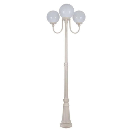 GT-624 Lisbon Triple 25cm Spheres Curved Arms Tall Post Light - Powder Coated Finish / E27 - Beige