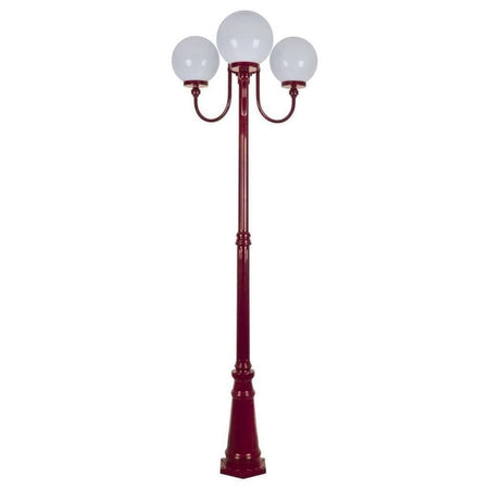 GT-624 Lisbon Triple 25cm Spheres Curved Arms Tall Post Light - Powder Coated Finish / E27 - Burgundy