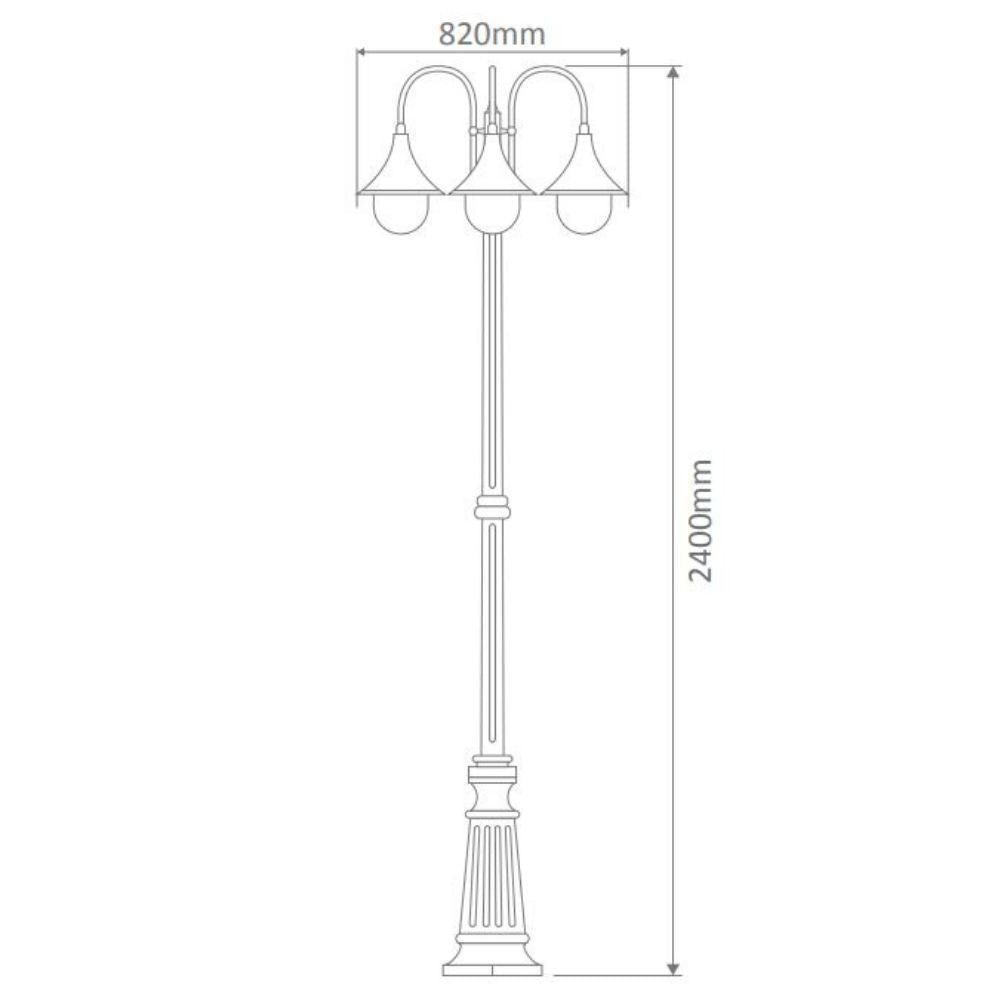 Monaco 3 light die-cast aluminium and moulded acrylic lens triple head 2.35m post light. Made in Italy, assembled and powder coated in Australia.