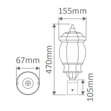 Vienna 1 light post top, complete with 60mm post adapter, die-cast aluminium body and moulded acrylic lens. Made in Italy, assembled and powder coated in Australia.