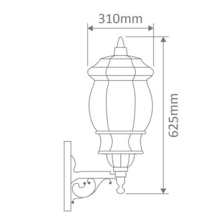 Vienna Large 1 light straight arm up facing wall bracket, die-cast aluminium body and moulded acrylic lens. Made in Italy, assembled and powder coated in Australia.